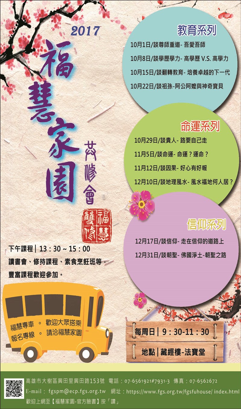讀書會、修持課程、素食烹飪班等,豐富課程歡迎參與。