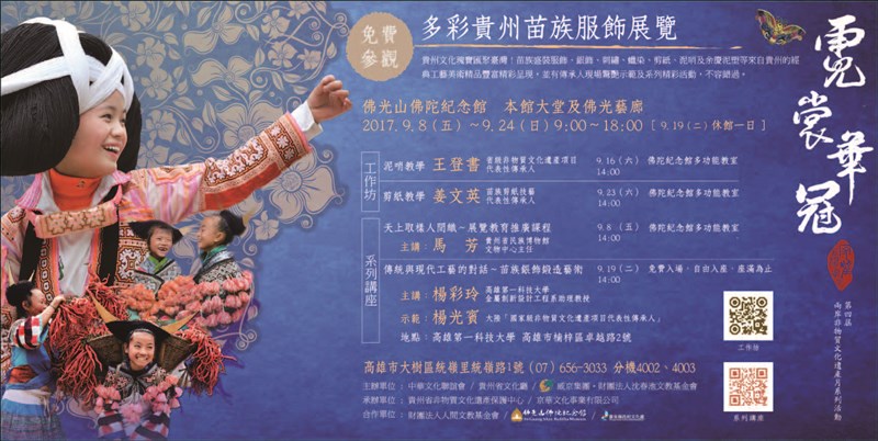 多彩貴州苗族服飾展覽 |2017.09.08 語音朗讀 496觀看次 字級 大 中 小 多彩貴州苗族服飾展覽 展出日期:2017/9/8(五)~9/24(日)9:00~1800﹝9.19(二)休館一日﹞ 地址:高雄市大樹區統嶺里統嶺路1路 洽詢電話:(07)656-3033分機4002、4003 前一篇文章 小港講堂《幸福與安樂講座》 下一篇文章 如是我聞新品-佛光念佛機 熱門新聞 01鑲嵌藝術2026.03.2302【詩】白花鬼2026.03.2503故宮特展神獸再現 麒麟、鳳凰登場 2026.03.2404南華大學茶禪雅集 靜坐書寫時光膠囊2026.03.2605星雲大師靈骨分燈歐洲 傳燈萬方2026.03.2606楊筑云、林芷均 奧爾良羽賽獲亞軍2026.03.2307星雲大師靈骨分燈北美 法脈永傳2026.03.2408中南部水庫水位告急 各地農損頻傳2026.03.2409人間佛教聯合總會訪越南 弘法新契機2026.03.2310沉浸式共織宇宙 在新北美術館2026.03.23 訂閱電子報 台北市 天氣預報 台灣一週天氣預報 相關報導 以文字護持人間福報運動睡眠新科技 養生保健新利器房仲第一品牌 永慶加薪3% 體驗美好手作 製皂幸福時光 博愛社大春季班招生中 薩克斯風吹奏春季班 人間大學台中分校招生中 跨越十年縱橫南半球到北半球 《行者》新書上市
