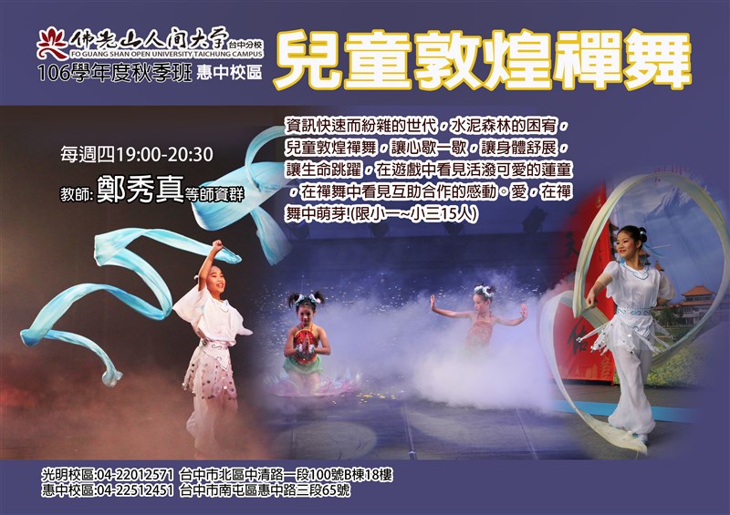 洽詢電話:04-2251-2451佛光山人間大學台中分校-惠中校區
