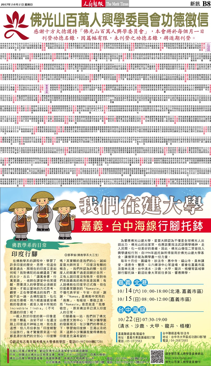 佛光山百萬人興學徵信每月1日刊登