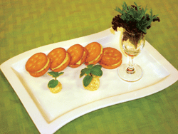 5.將冷凍後的鳳梨奶油起士,切片用餅乾夾起就完成了。