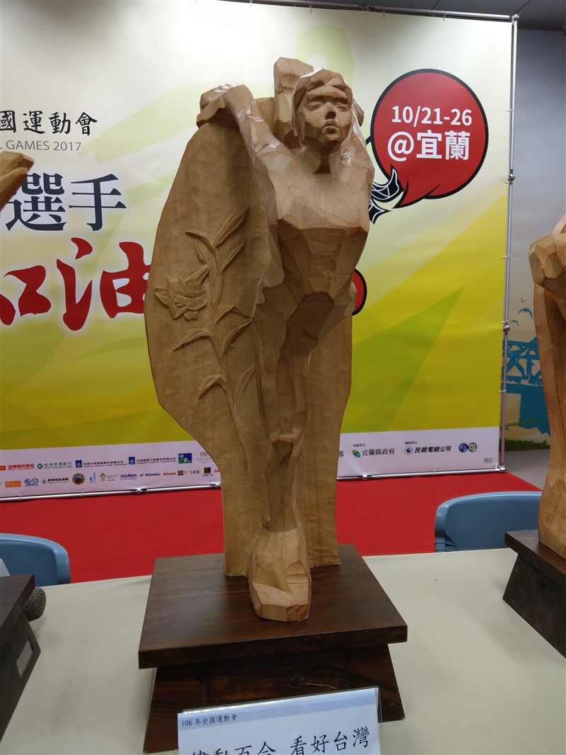 「要讓全國看見宜蘭」,副縣長朱壽騫曾任體委會副主委,看過國內外多場賽事,他強調,「這是全運會史上第1座檜木雕成的獎盃,在國際上也未曾見過」。