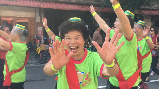 東勢花漾客庄踩街遊行,老老少少都很開心。圖/陳秋雲