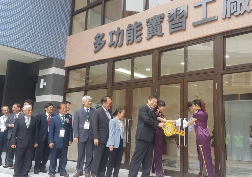 高應大合併前舉辦54周年「末代」校慶,校長楊慶煜在多功能實習工廠啟用儀式手舉鑰匙開啟大門,他表態將角逐併校後首任校長遴選。圖/蔡容喬