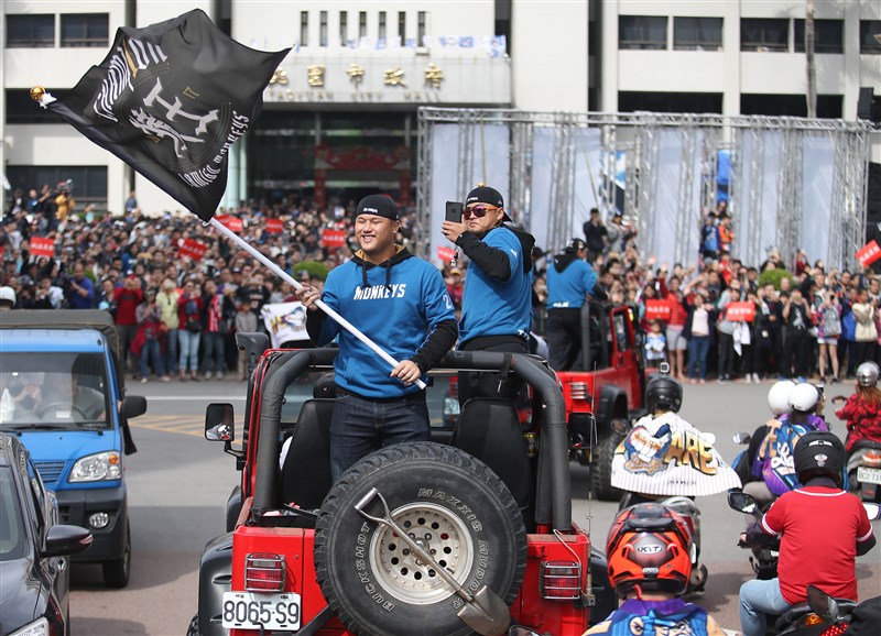 猿隊2006年奪下隊史首冠還是La new熊隊時期,2011年搬到桃園後,分別在12、14、15、17年奪冠,今天是第3次舉行封王遊行,首次以桃園市政府為終點,全隊在市府前廣場答謝球迷。