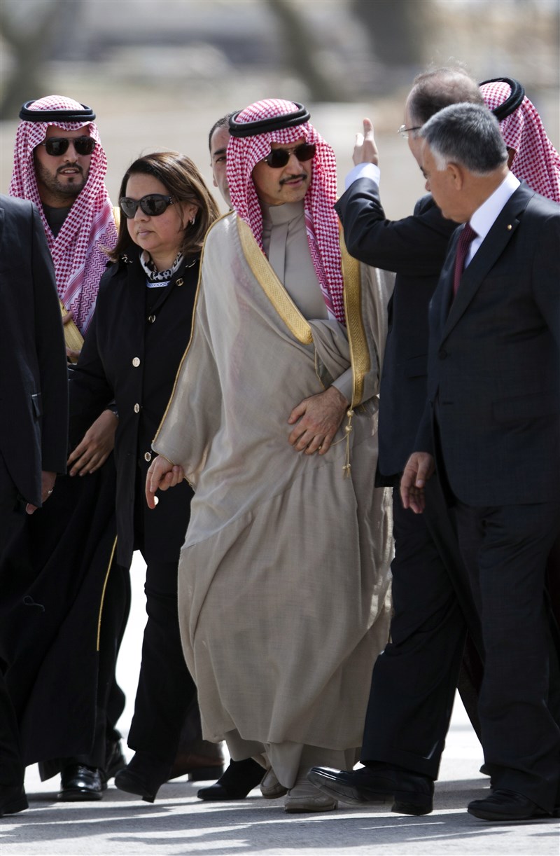 沙烏地阿拉伯國王沙爾曼展開肅貪行動,調查並拘捕重量級人士,包括高科技投資大亨阿瓦里德.賓塔拉爾親王(前右2)。圖/美聯社