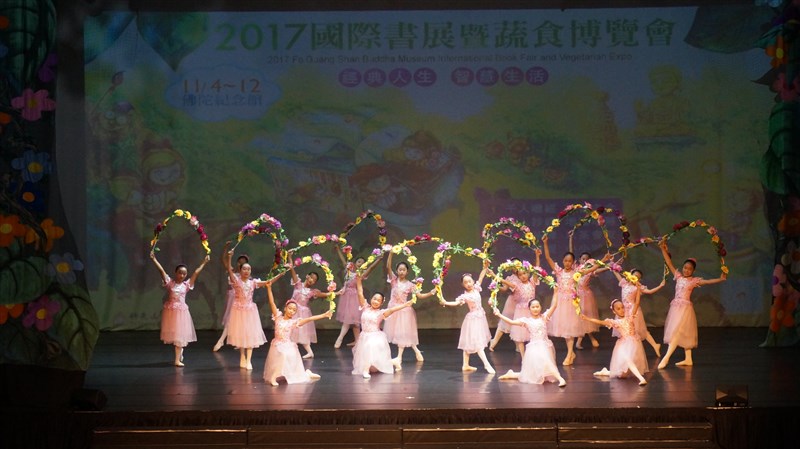 屏東信義國小藝術才能舞蹈班至佛陀紀念館大覺堂表演,該班首重發掘學童舞蹈潛能,培養舞蹈興趣,希望透過教學活動,開啟學生表達思想情意的創作能力,在藝術舞蹈課程亦要求扎實訓練。課程融合肢體彩妝、參訪、表演、繪畫等多元教學方式,成立以來在各項比賽中屢獲佳績。該校帶來的表演節目「春彩飛舞」共分為兩段,第一段是《夢花園》芭蕾舞曲,描述美麗的仙子在春暖花開的季節中,在花園裡翩翩起舞;第二段《水墨江山》則是象徵如行雲流水般揮灑自如,在節奏中體悟豐富人生旅程。