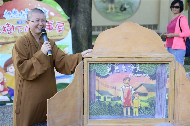 有趣的是,馬來西亞佛光文化出版的繪本故事「My Great Dad」特別為小朋友而設計,此次透過佛館國際組組長有律法師主講,全場以流利的、靈活的英文,將重點放在繪本故事及劇情的轉折點上,連意外出現的新竹科學園區的工程師與竹市西北扶輪社30餘位社員,也被吸睛而來,隨著繪本故事主角的神情和劇情發展,引得大人小孩的高度興趣和專注力,個個投入故事情節裡。
