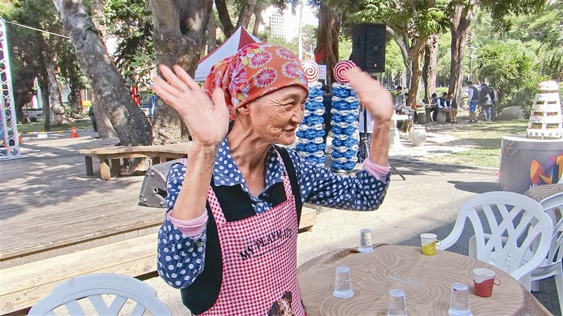 虎科婆婆首度受邀到學校,她向學生招手時,全場學生高興地歡呼「我愛您」。圖/蔡維斌