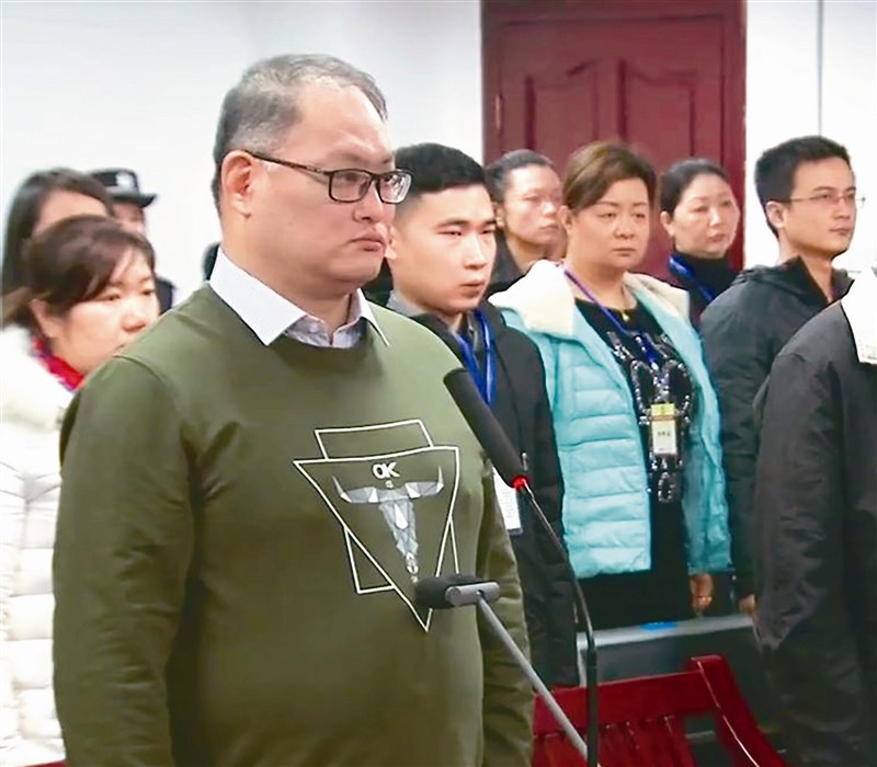 民進黨前黨工、NGO工作者李明哲(左)昨遭大陸以「顛覆國家政權罪」,判處有期徒刑五年,李明哲妻子李凈瑜(畫圈處)出庭聆判。圖/取自岳陽市中級人民法院微博