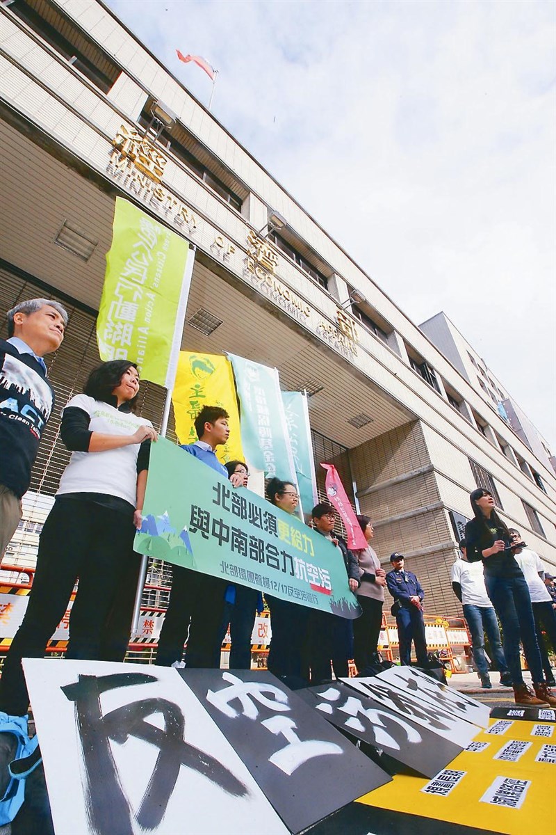 反空汙大遊行十七日將在台中、高雄舉行,北部環團昨天在經濟部前號召北部民眾參與,一同展現滅煤行動決心。圖/陳正興