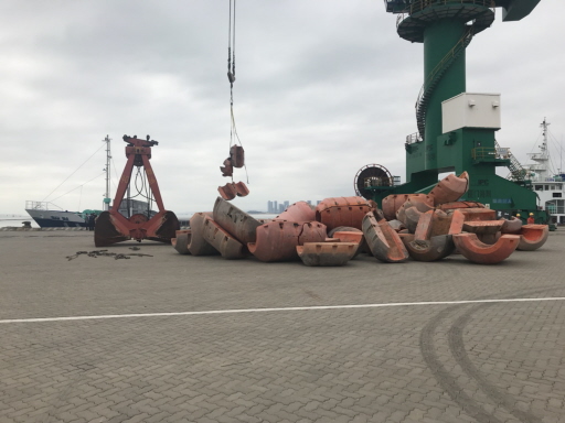 今天上午8時由小三通船舶「進薪輪」載運220個抽砂工程浮筒由料羅港啟航,先在金廈海域與大陸船舶會合,共同展開海域清潔行動,上午10時35分時抵達廈門劉五店海翔碼頭,算是首次兩岸共同合作清理「海漂物」。