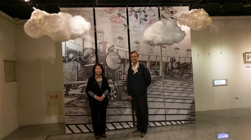 國策顧問翁金珠(左)及尹彙武館長,歡迎大家來參觀我的美學生活-翁金珠鋼筆畫展。