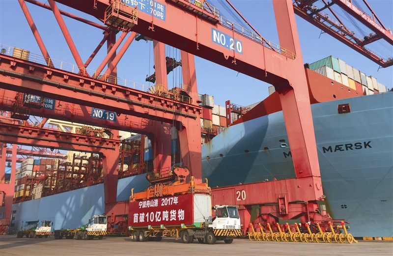 據浙江在線報導,去年寧波舟山港(圖/中新社)成全球首個九億噸大港,而今年再成為全球首個年貨物吞吐量超「十億噸」大港。寧波舟山港連續九年位居世界第一。