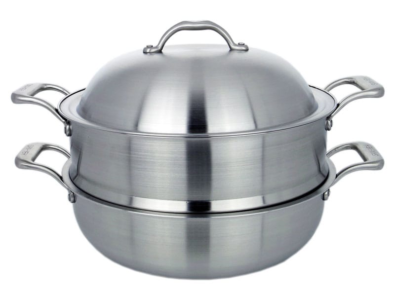 三葉鍋具為七層耐用複合金鍋體,儲熱性佳,全體均勻導熱,可縮短加熱時間。使用之X5CN18-10為最高等級之不鏽鋼,且厚度為2.8mm,比一般市面上名牌精品鍋具2.5mm多了0.3mm,食材即使不加油不沾不黏鍋,不易焦黑,中、小火即可烹調,少油煙易清洗,特殊鍋蓋設計,水膜密封,食物原味不流失,利用密閉效果可有效保持定溫定壓,烤蛋糕都不需使用烤箱,用小火就能烘培,從米飯、蔬菜類,甚至水煮蛋及蛋糕都能輕鬆製作,環保、節能、減碳設計優質鍋品,是每天不可或缺的專業級廚房鍋具。即日起至1/8台北世貿展,現場特價回饋。