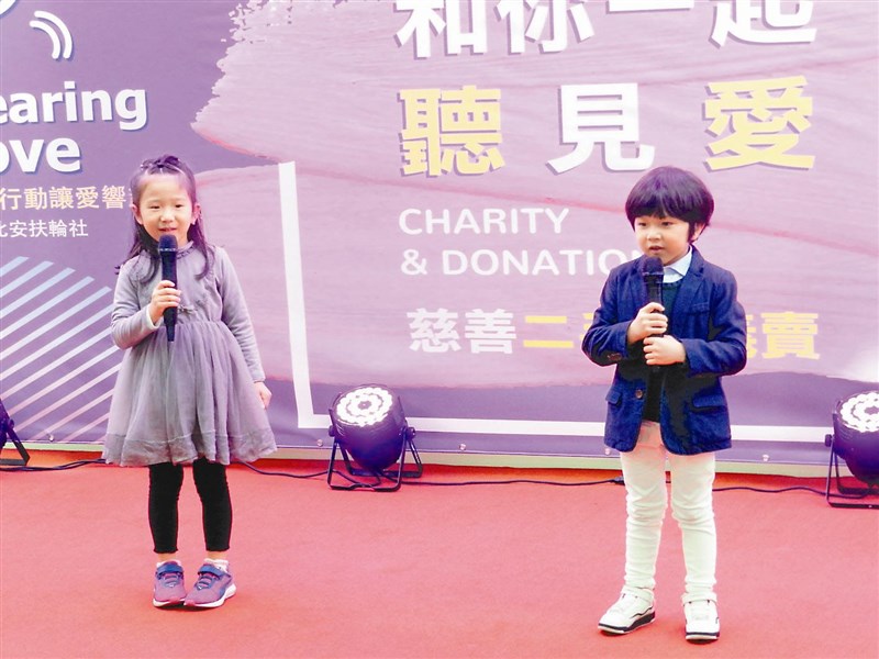 十歲的蕭安宇及五歲的士喆、千霈為義賣會開幕作表演,從舞蹈到相聲般的對話,難以想像他們是聽損兒。聽損兒家長邱文馨表示,孩子八個月大到基金會上多元課程,到幼稚園中班就能和一般孩子一樣學習,改變了一生。