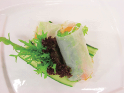 4.將捲好的越南春捲切開,即可食用。