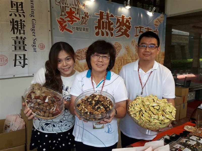 堅果類、薑母糖、燕麥巧克力等等,是李家堅果的招牌健康養生食品,李家堅果負責人李素杏表示,每次參展,很多舊客戶會前來購買,並再介紹新客戶,這都歸功於他們對食材、品質的嚴格控管,現場推廣的各式養生商品都是熱賣搶購商品。