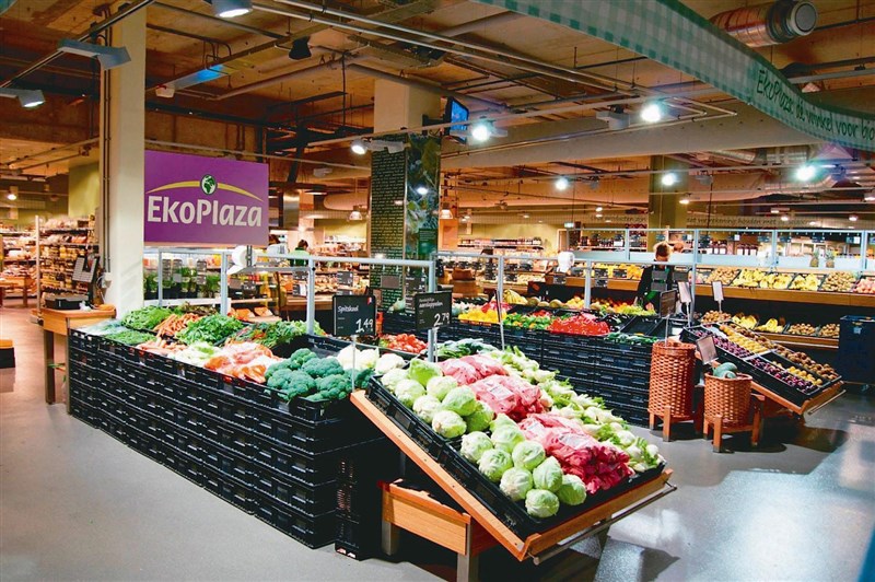 荷蘭連鎖超市Ekoplaza在阿姆斯特丹分店推出全球第一條無塑膠購物走道。圖/美聯社
