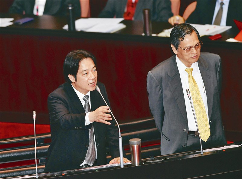 行政院長賴清德(左)與陸委會主委陳明通(右),昨在立法院會施政總質詢表示,台灣主權獨立事實不會改變。圖/中央社