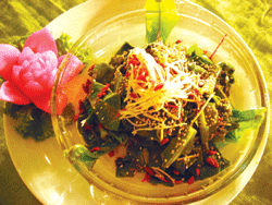 5.加上少許辣椒絲、薑絲和枸杞、芝麻裝飾後即可享用。
