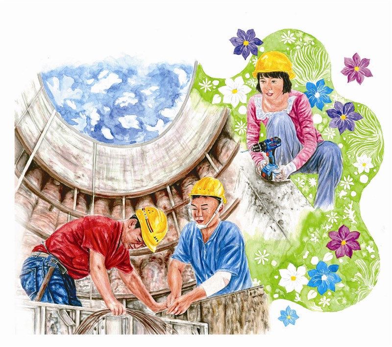 小他6歲的金來嫂,身材嬌小,瘦骨嶙峋,一年到頭跟著黃金來在工地幹活,當工地小工,幫忙做些較不費力的雜工,像是遞工具給工人,中午跑腿幫大夥買便當,收工後掃地、清洗鐵鍬、收拾電線或工具等雜事。