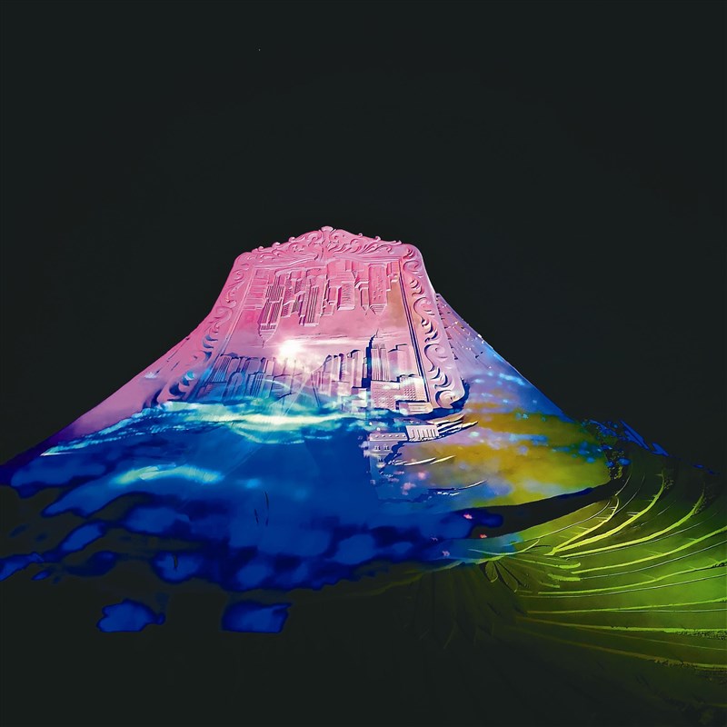 主辦單位表示,此次夜間沙雕季斥資百萬打造光雕投影秀,在高達十公尺的主雕〈顛倒〉以光雕投影方式,融合周圍國際沙雕作品光影耀動,是視覺和聽覺的震撼。