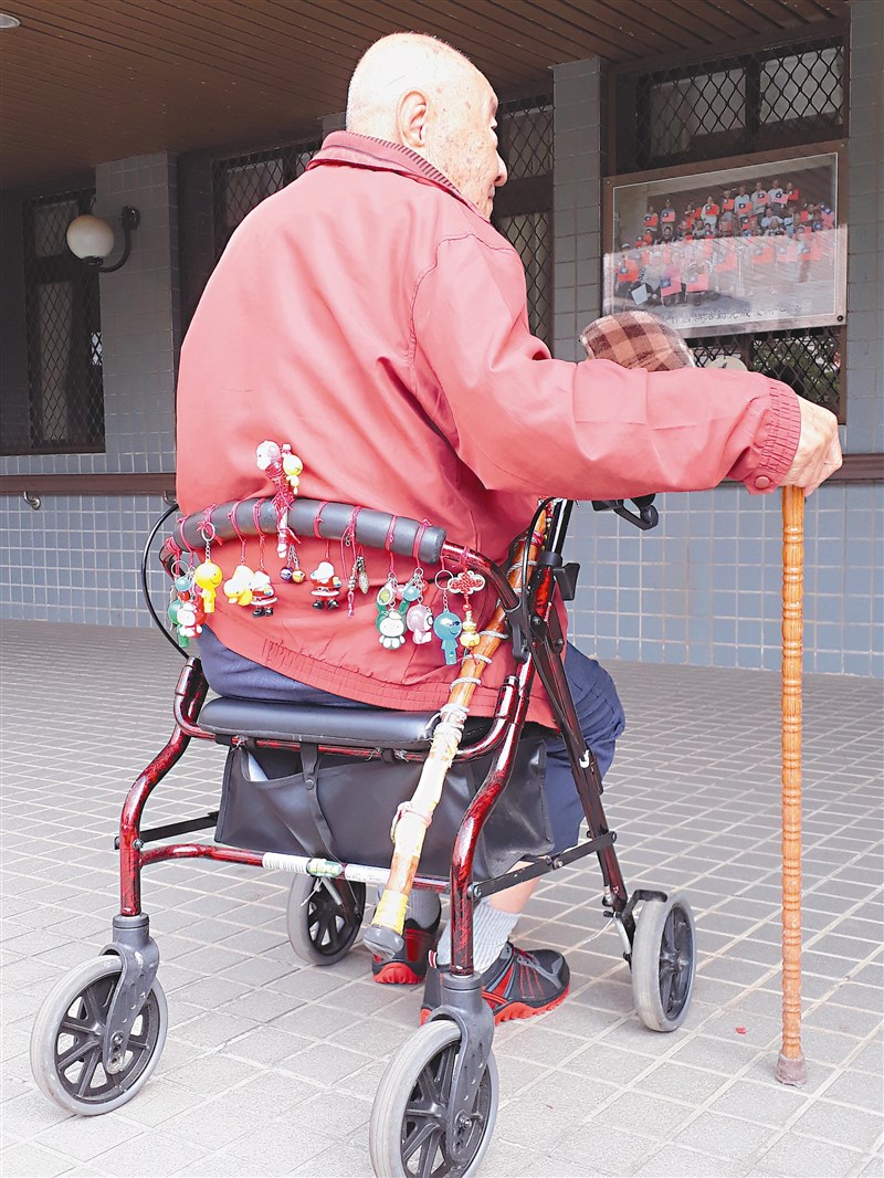 這老先生每天推著輪椅散步,身邊的收音機傳來經典的懷舊旋律,隨口跟著哼唱。他還親手在「愛車」上垂掛各種小飾品,裝飾得別出心裁,當別人問起時,總是嘴角上揚地說:「這是我家人送的。」說不盡的故事,彷彿家人隨時陪伴著他,甜蜜回憶帶給他幸福滿滿的每一天。