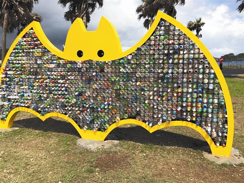 瑞芳區公所利用淨灘活動與各里「黃金資收站」所撿拾蒐集的寶特瓶,組裝成「環保蝙蝠」大型公共藝術,為下個月十四日即將舉辦「瑞芳蝙蝠季」活動暖身。
