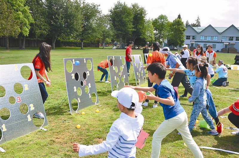 小朋友奮力投球得分。圖/人間社記者王景偉
