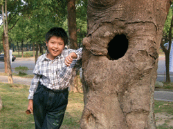 相片中的我,穿著帥氣的格子襯衫及牛仔褲,瀟灑的靠在一棵大樹旁,得獎的喜悅洋溢在臉上,我的笑容和南台灣的陽光一樣燦爛,背後成排的樹及青草地,相映成美麗的畫面。