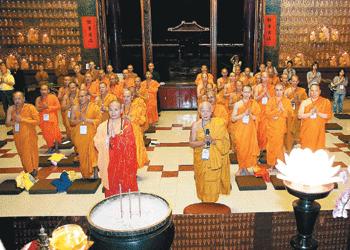 泰國桐艾府僧伽執行長Phratersumeth-munee大比丘,八日晚上在大雄寶殿引領泰僧誦《吉祥經》,並致贈泰國著名的素陀佛像,由佛光山寺住持心培和尚代表接受。隨後,大眾前往傳燈樓三樓座談。