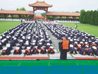 連日豪雨,仍然鼓足勇氣參加十日的朝山修持活動。「雨下得太大了!大家都勸我不要來朝山,但對修行的堅持,所以非來不可,想不到佛光山竟然無風無雨,真是佛菩薩保佑!」遠從宜蘭來的八十六歲明本法師,一語道出所有朝山者的心聲。
