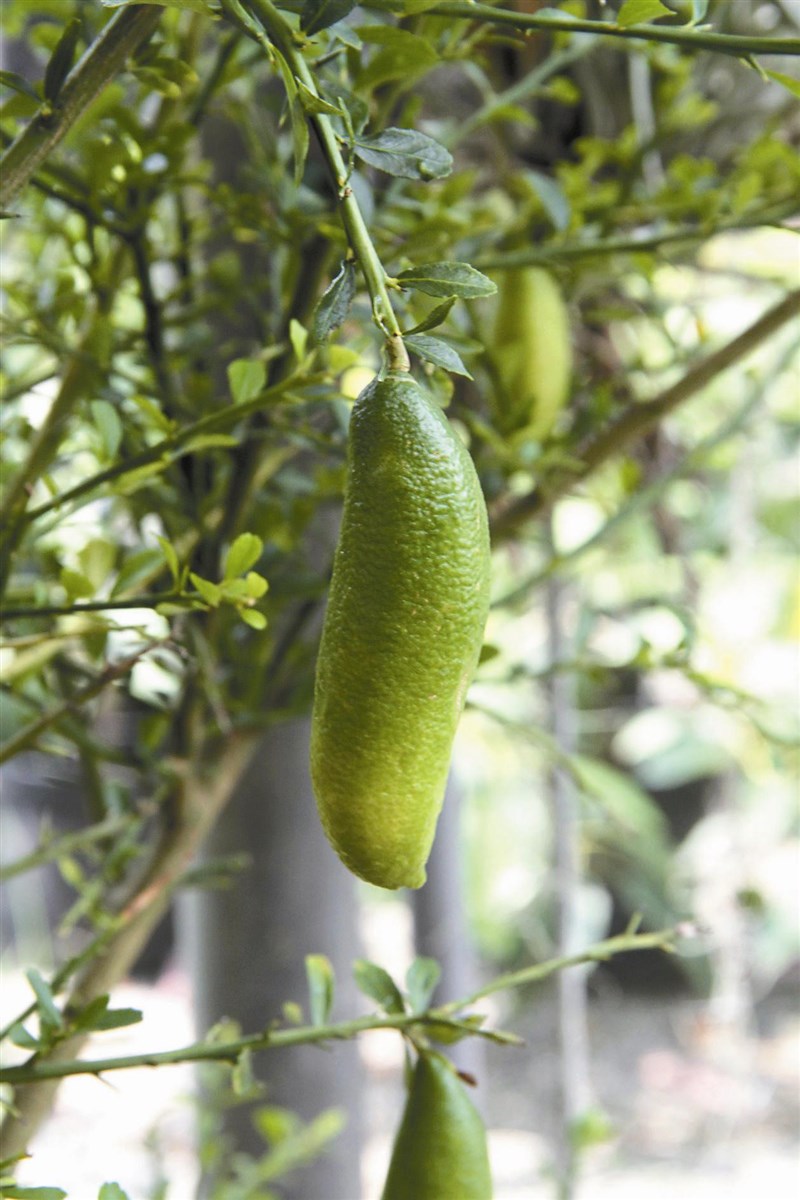 【本報台南訊】台南新化區從事農業超過三十年的林錦文,成功栽種來自澳洲的手指檸檬,他利用嫁接的方式,讓一般民眾在家中可自己栽種,作為觀賞。若要以收成為優先者,以地植方式栽種,就能種出豐碩果實。