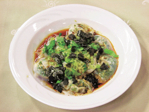 5.醬油、白醋、紅辣椒油、香油調勻淋在餛飩上。