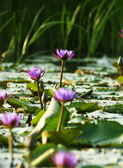 水生植物分為挺水、浮水、漂浮,及沉水等四大家族: