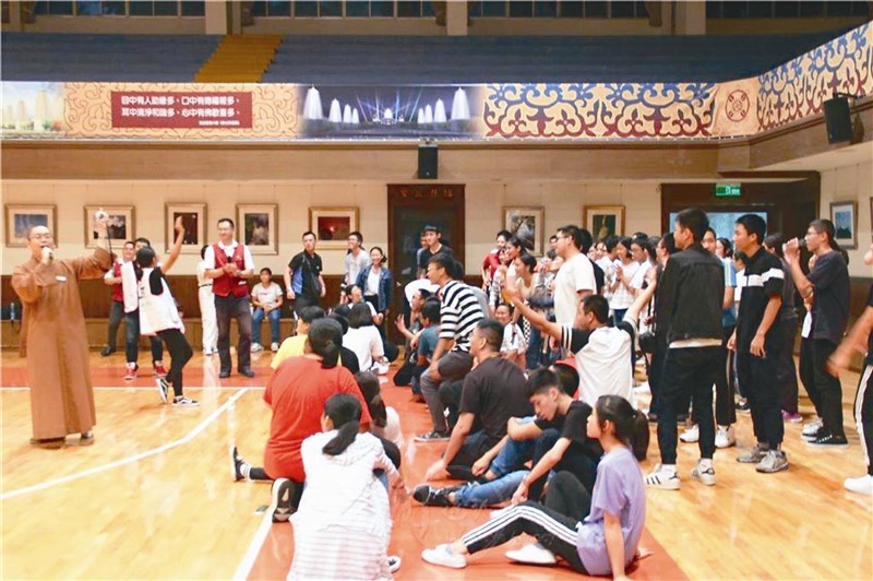 慧屏法師帶動團康,現場歡呼、尖叫聲四起,氣氛很熱烈。圖╱人間社記者李生鳳