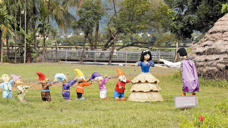 美濃秋冬樂活嘉年華以稻草重現經典童話故事場景。圖為白雪公主與七矮人。圖╱中央社