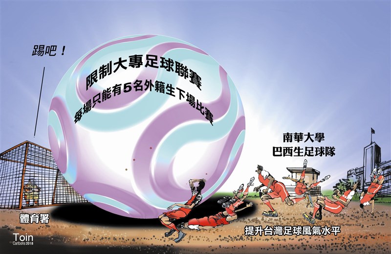 當政府的政策是鼓勵外籍生來台就讀時,卻又限制這些外籍學生參加台灣的大學體育活動,真的不懂這是什麼邏輯下的政策考量。台灣足球要能夠提升,這些外籍生的足球熱愛者,絕對功不可沒,很多學校能組成足球校隊,都是有這些外籍生帶著練,慢慢的才有成績的。現在卻為了一些無謂的考量,要限制外籍生上場的人數。