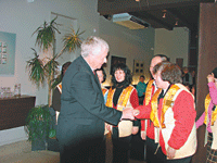 瑪努考市長Barry Curtis致詞感謝所有義工的發心,奉獻時間及精力,同時讚歎毗鄰瑪努考Barry公園的北島佛光山,對文化教育貢獻有目共睹,恭喜佛光山道場的三十位發心義工榮獲此獎項,並以大眾的服務精神為榮。
