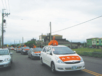 二十四日清晨七點半,在簡單的儀式後,法師的灑淨車隊就出發了,佛祖車和法師的車隊,由前導車和永靖後憲弟兄的機車隊引導進行「淨路」。先行的宣傳車,沿路不斷的廣播:「佛祖出來囉!請出來拜佛祖…」,好讓早早備好香案的人家,不至於錯過灑淨車隊,這項貼心的舉動,也讓未及準備香案的人,趁著車隊未到的空檔,趕快回家準備香案迎佛祖;還有田裡農忙的鄉親紛紛放下鋤頭,站在田邊歡喜的等待佛祖,車隊依序經過時,所有人持香虔誠的迎接,平時寧靜的鄉村因為法師的灑淨,頓時熱鬧溫馨起來。