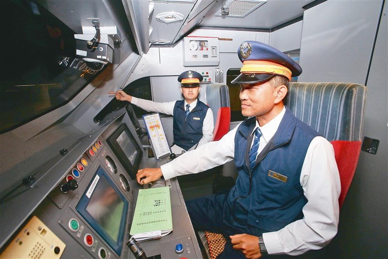 台鐵普悠瑪和太魯閣號昨起實施雙人乘務,司機員擔任駕駛(右),搭配學習司機員擔任助理(左),強化安全。圖╱中央社