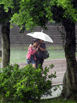 早上出門前,媽媽一再叮嚀小宇要帶雨衣,小宇嫌麻煩,告訴媽媽:「天氣那麼好,怎麼會下雨?」沒想到放學時,忽地下起豆大的雨。