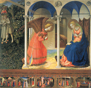 安傑利科是十五世紀道明修會的修士,他因為畫教堂裡的祭壇畫,和牆上的鑲板而展開了藝術生涯。他的作品都是宗教主題,能幫助人們了解教會的教導,畫作結合了簡單直接的創作風格,以及對亮度和色彩的精細運用。