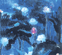 作品用色豐富而飽滿,畫面都填滿,卻又不感到擁擠,甚至還有疏朗的空間。這種感覺就像佛教的緣起觀,任何事物不是單獨存在的,以這幅畫來說,假如拿掉其中的一片葉子或一朵花,美則美矣,唯獨讓人覺得有個缺洞。這就像世間一樣,假如少了商人,我們會感覺到生活很不便利,或者少了農夫,我們就不知道要吃什麼了。用緣起觀來看待世間,世間每一件事情,每一種人都非常重要,你我看似沒有相關,其實彼此都在互濟互助呢!(114×113cm)