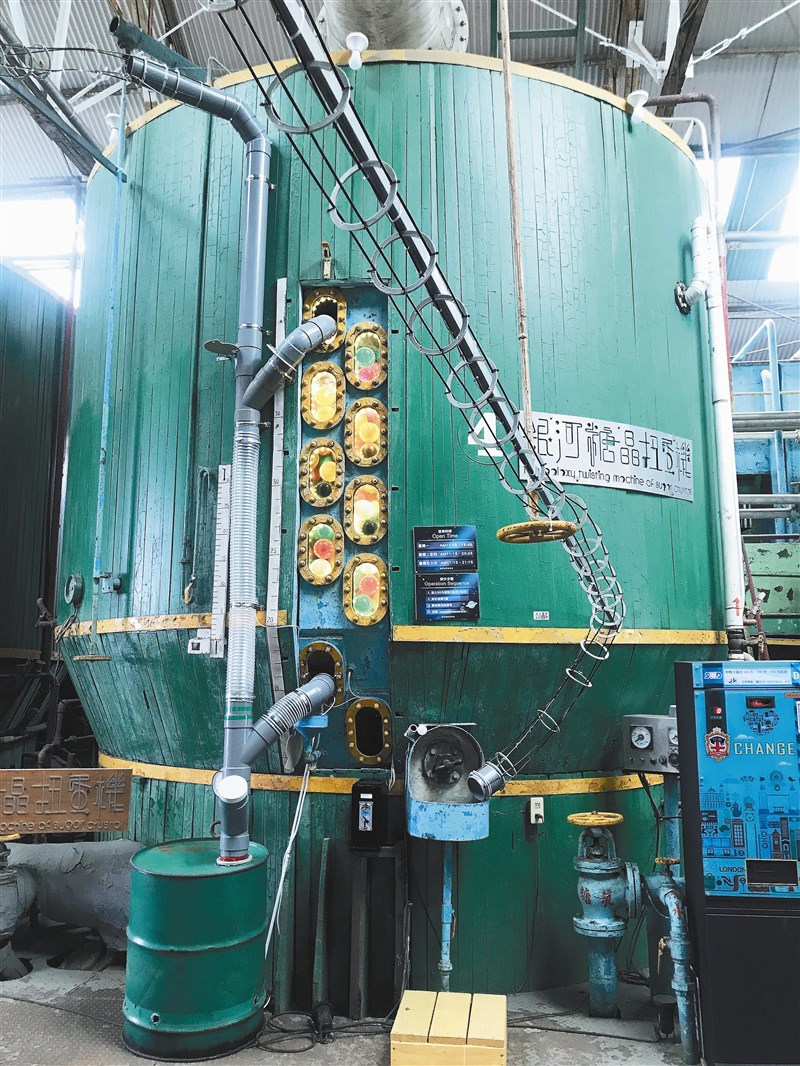 高達二層樓半的「巨型銀河糖晶扭蛋機」,原先是製糖過程中使用的真空結晶罐,能把糖液壓縮為固體,如今變身成扭蛋機,成為百年製糖工廠的新驚喜。