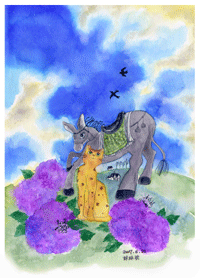 一路上,碰到賣力馱著糧食的老驢,花貓自以為是的說:「老
