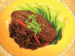 《新元氣健康美食》梅干苦瓜 今日主廚 紅隊:觀世音素菜餐廳張舜賢 黃隊:正豐樓餐廳駱進漢主廚 |2007.07.04 語音朗讀 263觀看次 字級 大 中 小 材料:苦瓜一條、青江菜六支、梅干菜一把。紅辣椒、薑各一支。香菜、八角少許。調味料:黃豆醬二匙、素蠔油一大匙 醬油四茶匙、糖四小匙、水適量。作法:1. 將苦瓜油炸至金黃色,梅干菜洗淨備用,紅辣椒和薑片下鍋爆香,再加入八角及調味料。2.加入高湯後,將苦瓜及梅干菜放入鍋中,滷至苦瓜軟嫩。3.另起一鍋清水,汆燙青江菜,加少許香菜,依順序排盤即可。新一季推出的「新元氣健康美食」,採取紅黃主廚競賽的方式,歡迎讀者於每周一至周五下午五時,在人間衛視(第七或第八頻道)收看本節目。 前一篇文章 《寵物一家親》兔子如同女兒溫柔 下一篇文章 《黛媽咪新視界》個性不合是婚姻殺手? 熱門新聞 01【印象旅人】阿里山森鐵首航記2026.04.1102人口持續減少 今年新生兒恐跌破9萬 2026.04.1103螢光花泉季 卡比胖拉超療癒2026.04.1104鄭習會 鄭:兩岸和平制度化2026.04.1105【口腔健康攸關長壽】 張添皓:從齒啟動全身保健2026.04.1106【養眼專欄】 糖尿病為何讓視力忽近忽遠?2026.04.1107洗衣機新過濾系統 捕捉9成微塑膠2026.04.1108MLB太空人打敗洛磯 鄧愷威中繼成功2026.04.1609佛光大佛供奉法華塔與《法華經》信仰意涵2026.04.1210紐約曼哈頓 豆梨花盛開2026.04.11 訂閱電子報 台北市 天氣預報 台灣一週天氣預報 相關報導 【生活快門】奔向天堂【愛的關鍵字】阿媽的麥香奶茶【生活快門】旺來福至【情緒漩渦】陪伴孩子悠遊網路世界【暖心時刻】黑夜裡最亮的陪伴【生活快門】幸運草化身