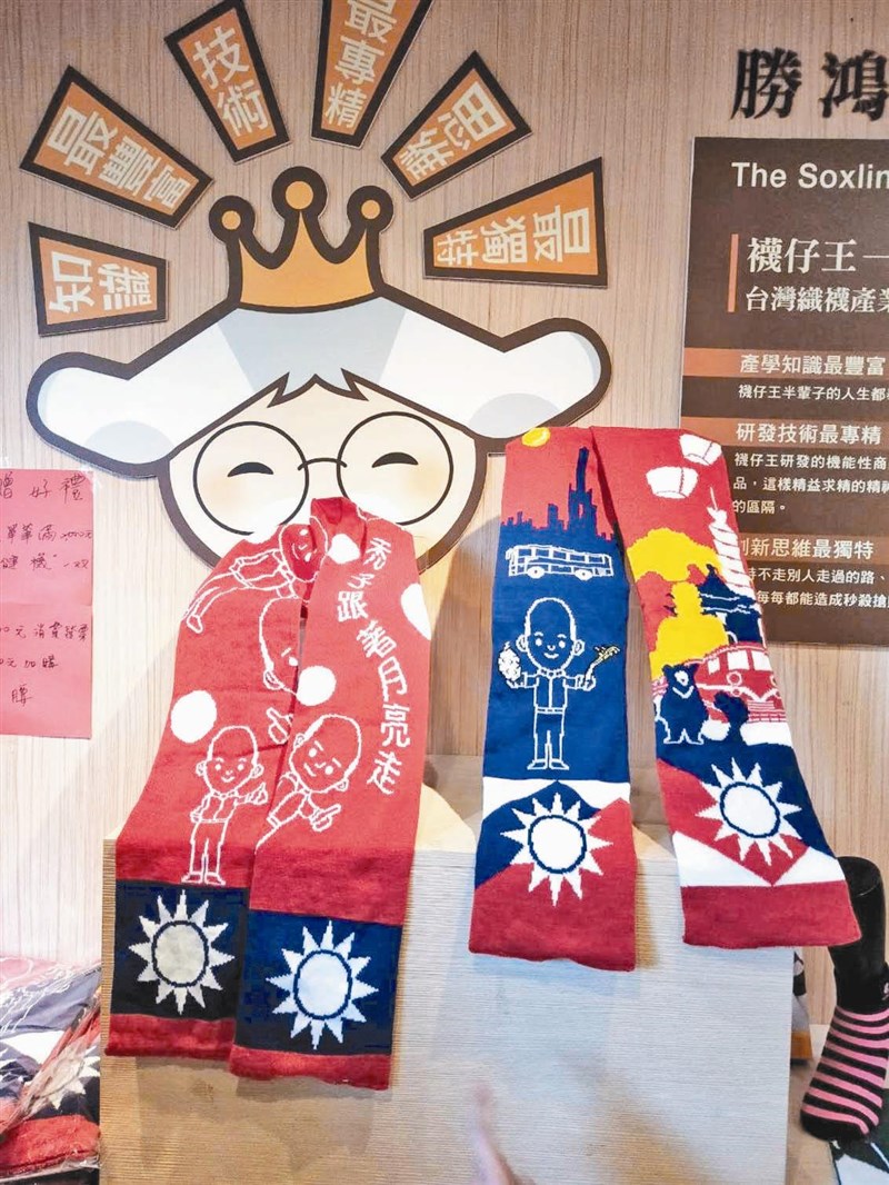 生產國旗圍巾的彰化縣襪仔王,推出三百條韓國瑜限量版國旗巾,明年元旦在高雄市升旗典禮免費送給前三百名參加者 。圖╱何炯榮