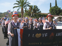 【人間社記者慧宣、覺皇洛杉磯報導】「We love America, U.S.A」齊整有力的口號,讓佛光會洛杉磯協會近一百人參加哈崗社區舉辦的美國國慶遊行,從九十組隊伍中脫穎而出,得到總冠軍。